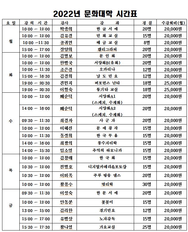하남문화원 문화대학 3분기(7~9월) 수업 일정 안내