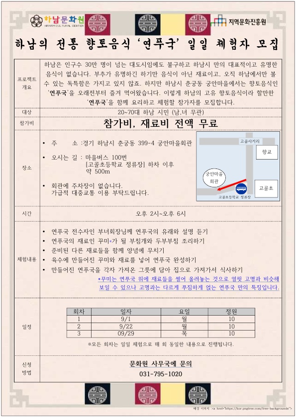 식문화 체험 [더 팔레스 ; 하남의 숨은 진미] 신청 안내