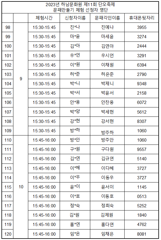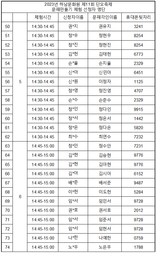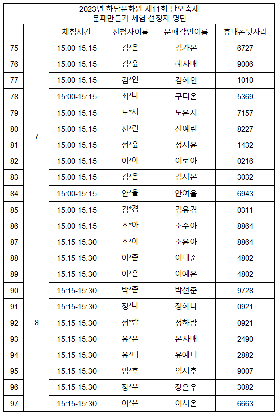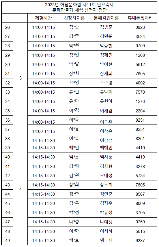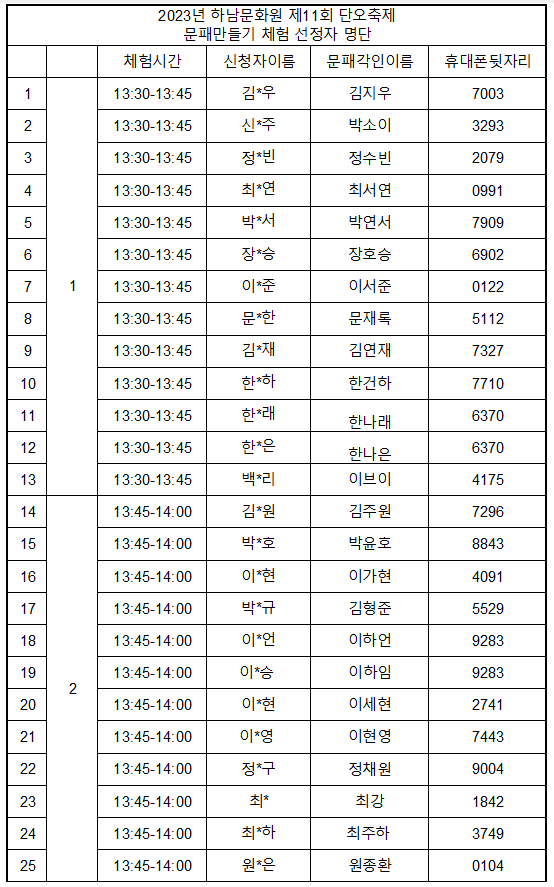 체험시간과 각인된 이름을 잘 확인하시기 바랍니다!