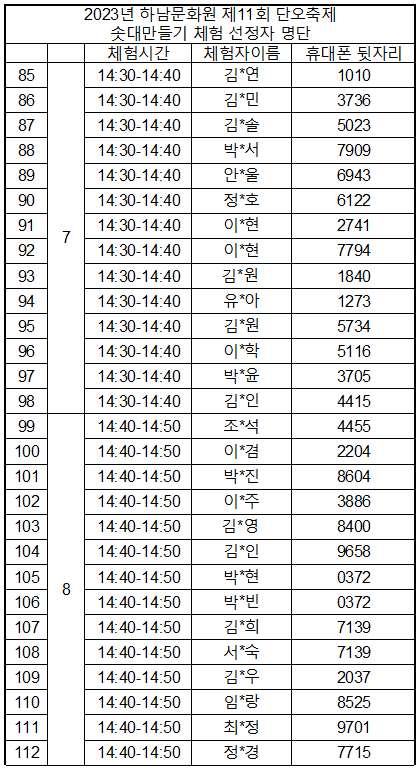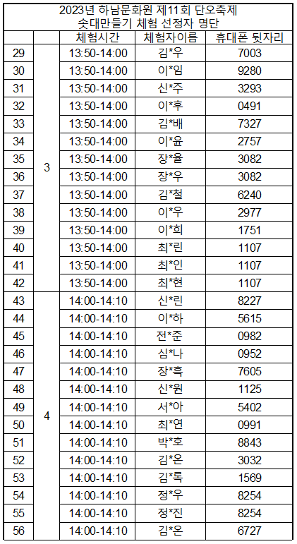 솟대 만들기 선정자 명단을 게시 하오니