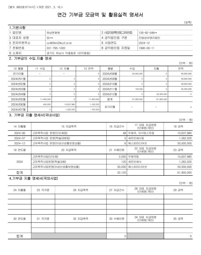 하남문화원 2024 기부금모금액 및 활용실적명세서 공개