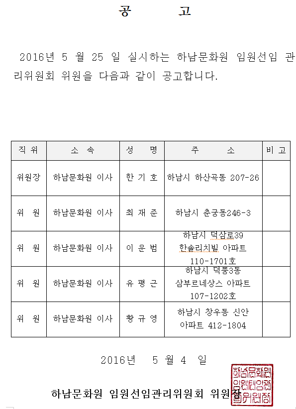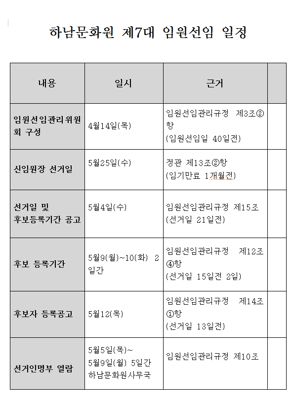 하남문화원 제 7대 임원선임 공고