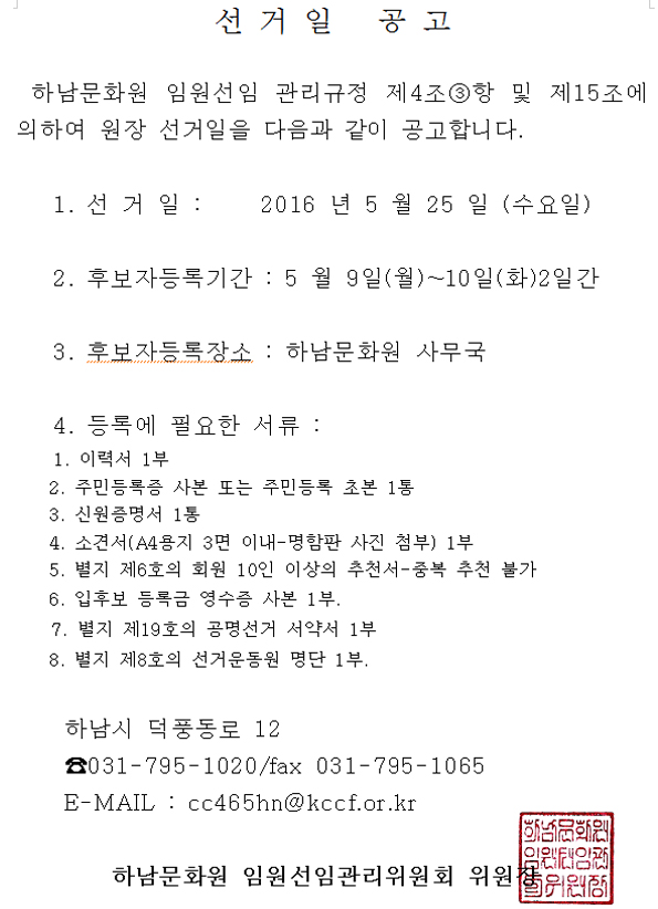 하남문화원 7대 원장 선거 후보자 등록 공고