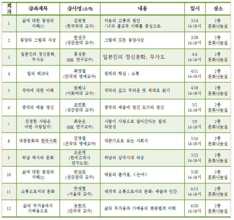 개강일시: 2019년 3월 14일(목)오후 4시~6시