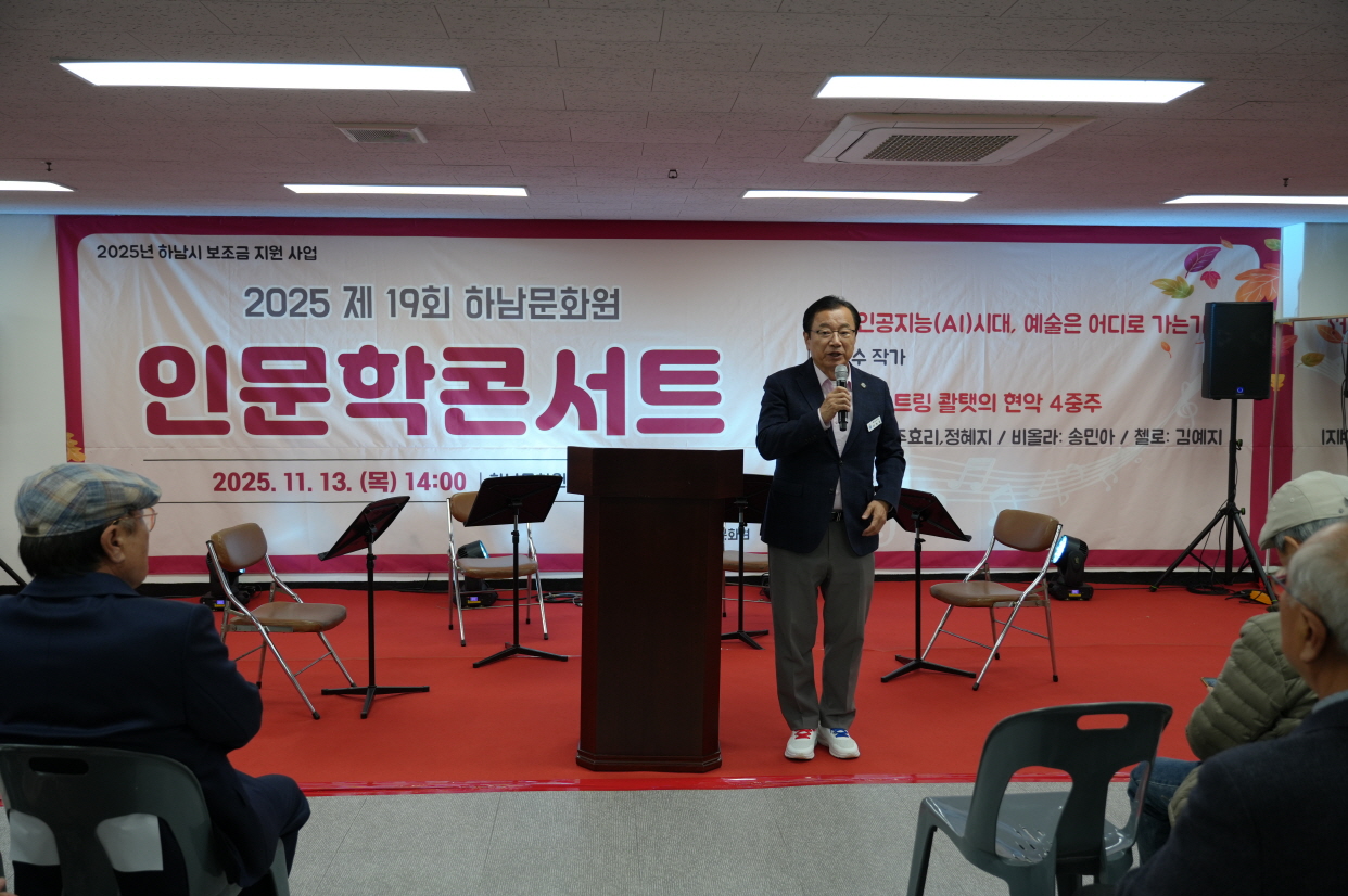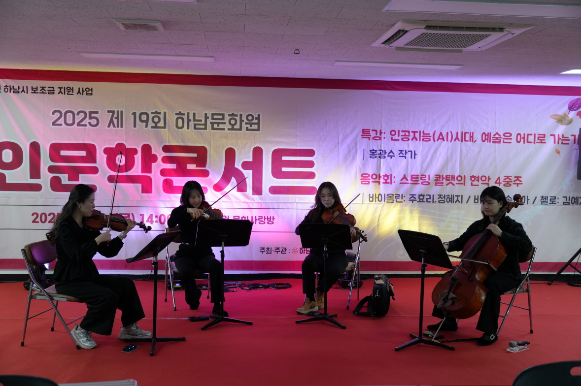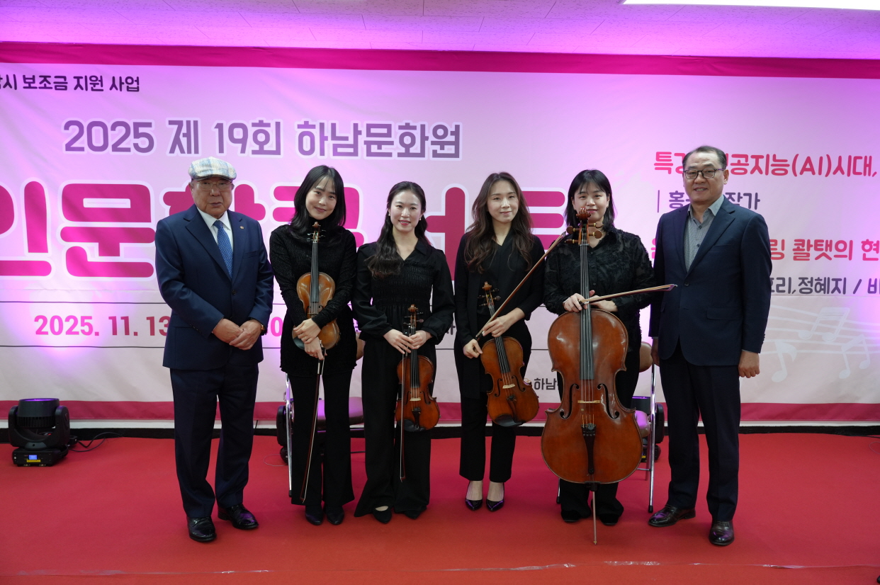 하남문화원, 인문학 콘서트 ‘인공지능(AI)의 시대, 예술은 어디로 가는가?’ 성황리 개최 하남문화원(원장 임현구)은 2025년 11월 13일 오후 2시, 하남문화원 대강당에서 인문학 콘서트 「인공지능의 시대, 예술은 어디로 가는가?」를 성황리에 개최했다. 올해로 19번째를 맞은 이번 행사는 급격히 변화하는 인공지능 시대 속에서 예술의 본질과 인간 창의성의 의미를 성찰하기 위해 기획되었었다. 이날 특강은 2024년 문화대학 특강 예술, 달라진시선-포스트모더니즘 쉽게 이해하기 주제로 명강연으로 큰 호응을 얻었던 홍광수 작가가 맡아, 생성형 AI가 예술 창작 과정에 미치는 영향과 예술의 본질적 가치가 무엇인지에 대해 깊이 있는 강연을 펼쳤다. 홍 강사는 “AI가 만들어내는 작품이 늘어나고 있지만, 예술을 통해 감동을 주는 힘은 여전히 인간의 내면에서 비롯된다”고 강조하며 기술과 예술의 미래 관계에 대해 다양한 관점을 제시했다. 특강 후 이어진 현악 4중주 연주팀 ‘스트링 콸텟(String Quartet)’의 공연은 인문학 콘서트의 주제와 긴밀히 연결되며 깊은 인상을 남겼다. 이번 무대는 ‘기술이 대체할 수 없는 인간적 감성’을 음악으로 표현하는 데 초점을 맞추어 기획되었다. 현장에서 연주된 ‘Gabriel’s Oboe’, ‘Air on G String’, ‘Clair de Lune’ 등 클래식 명곡들은 최근 AI가 자주 재해석하는 작품들이기도 하다. 스트링 콸텟은 이 곡들을 인간 연주자만이 만들어낼 수 있는 ‘호흡, 울림, 미세한 속도 변화’로 표현하며, 기술이 흉내낼 수 없는 예술적 감각을 관객들에게 생생하게 전달했다. 특히 선율의 흐름과 악기 간 미묘한 균형을 통해 “AI와 인간의 연주가 무엇이 다른가”라는 질문을 감각적으로 체험하게 하는 무대를 완성해 큰 호응을 얻었다. 행사에 참석한 한 시민은 “AI 음악을 많이 들어왔지만, 오늘 공연을 보면서 인간의 연주가 가진 미세한 감성의 차이를 확실히 느낄 수 있었다”고 소감을 전했다. 임현구 하남문화원장은 “이번 인문학 콘서트는 AI 시대에 예술이 나아갈 길에 대해 함께 고민해보는 뜻깊은 자리였다”며 “기술 속에서도 인간 고유의 예술성을 지켜 나갈 수 있는 다양한 문화 프로그램을 계속 이어가겠다”고 밝혔다. 한편, 하남문화원은 매년 인문학 특강, 문화예술 교육, 단오제, 민속제등의 전통 행사, 유적답사 등 다양한 시민 참여형 프로그램을 운영하며 지역 문화예술 발전의 중심 역할을 하고 있다. |