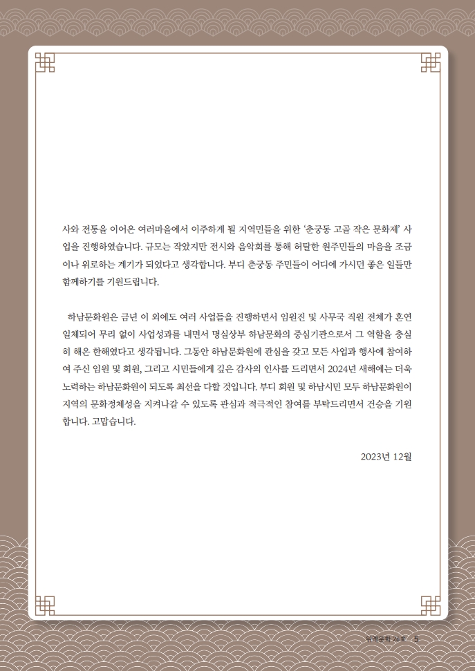 모두에게 사랑받는 하남문화원이 되도록 노력하겠습니다.