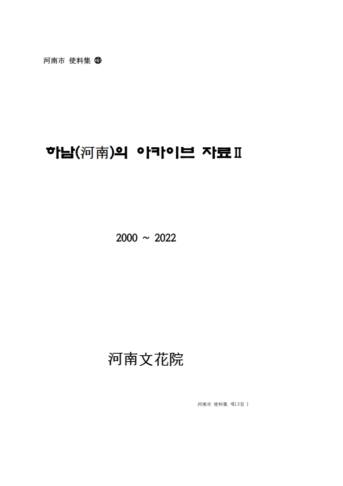 [향토사료집 13] 하남(河南)의 아카이브 자료Ⅱ