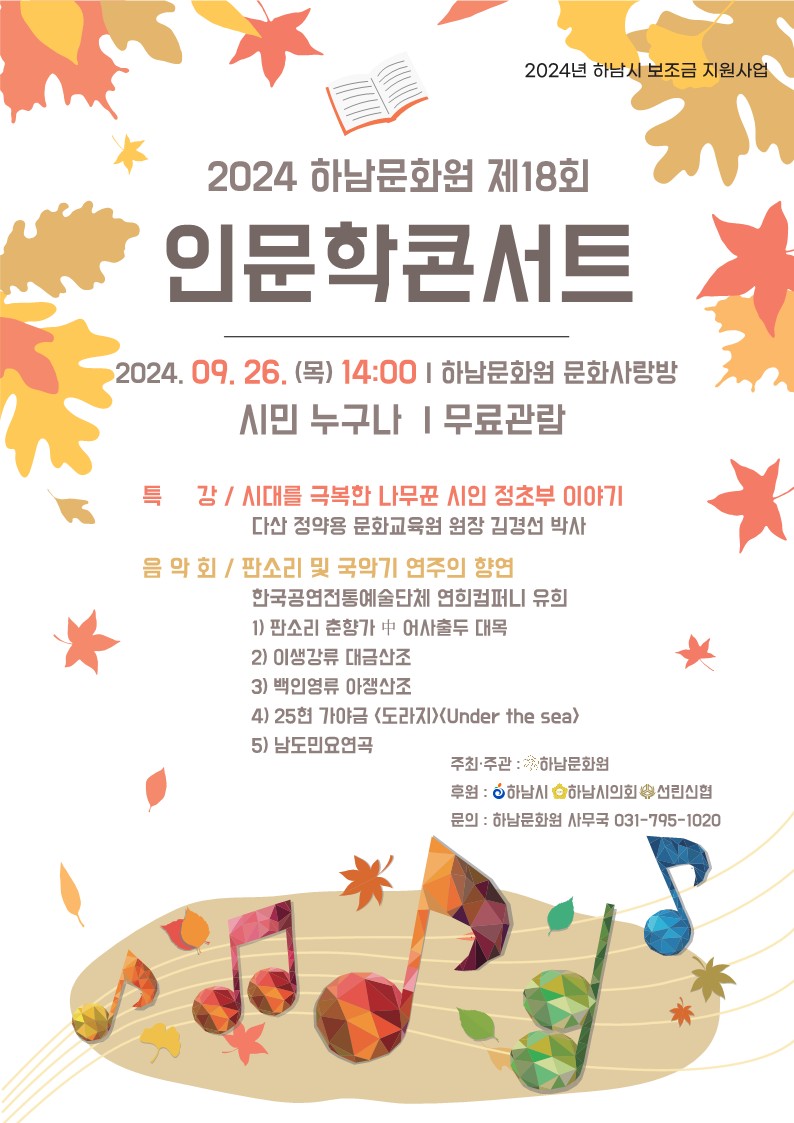 ▣ 행사명: 하남문화원 제18회 인문학 콘서트